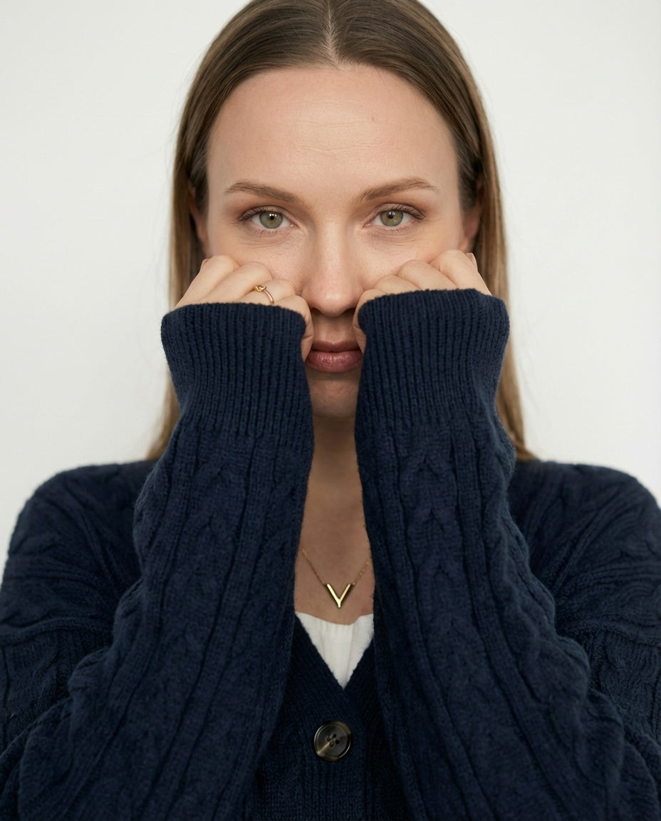 Miška megztas megztinis su kabeliu Miška megztas megztinis su kabeliu