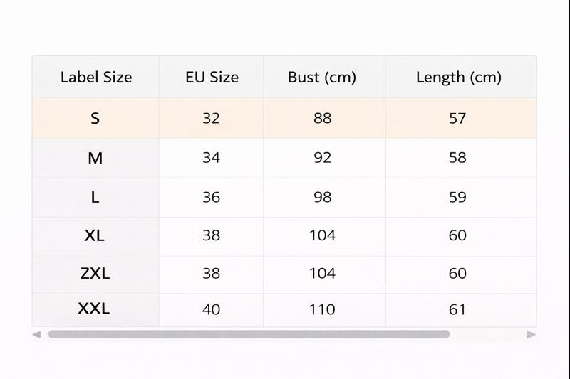 Prie kiekvieno gaminio pridedamas išsamus dydžių vadovas, kuris padės išsirinkti idealiai tinkantį variantą.